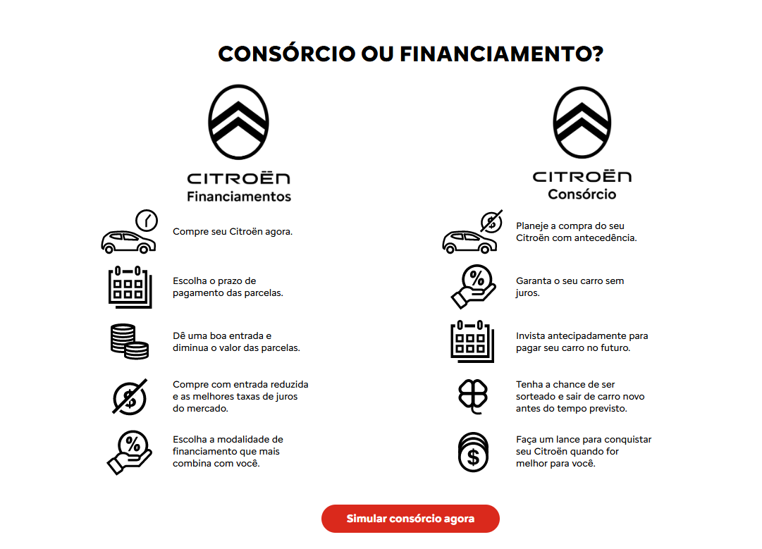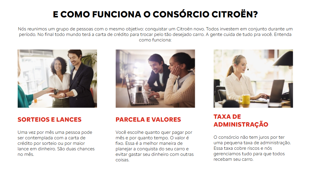 O consórcio é uma modalidade de compra planejada onde você participa de um grupo de pessoas com o mesmo objetivo: conquistar seu veículo. Todos contribuem mensalmente para formar um fundo comum e, por meio de sorteios mensais ou lances ofertados, os participantes são contemplados com a carta de crédito para adquirir o carro escolhido ou qualquer outro modelo da linha Peugeot disponível.